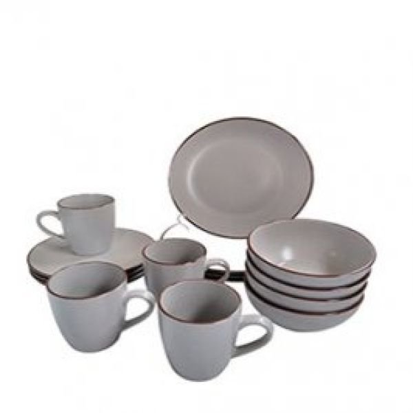 Vajilla de Porcelana Gris con Borde Set x16