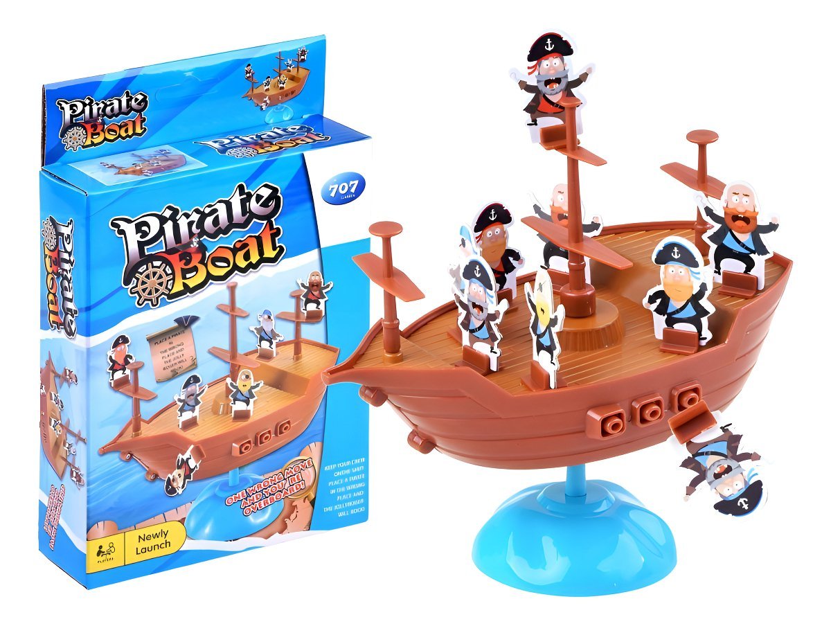 ¡Prepárate para la diversión con el Juego de Mesa Equilibrio del Barco Pirata! Este emocionante juego familiar consiste en colocar piratas en un barco en constante equilibrio. La tarea es desafiante y emocionante, ya que debes colocar al pirata en el barco sin que caiga al agua.