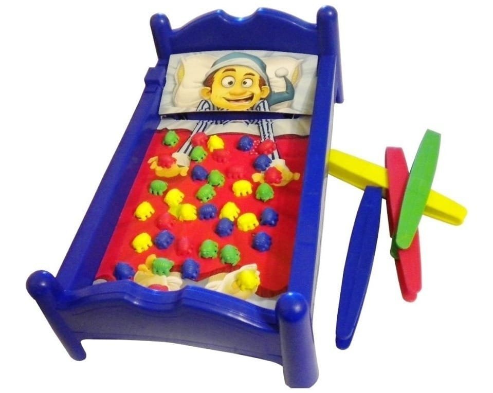 – Contenido: 1 Tablero-Cama Motorizado con Sábana y Almohada de Cartón para Jugar, 4 Pinzas y 40 Pulguitas – Objetivo: ¡Atrapá l…