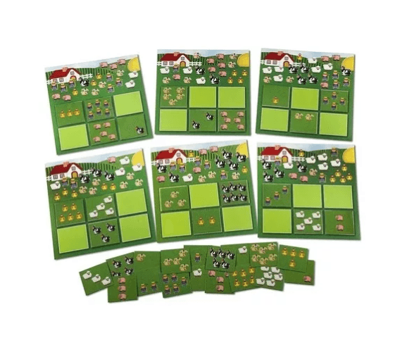 Contando figuras de animales, los niños deberán reconocer las cartas con figuras idénticas a las que aparecen en el tablero de juego.