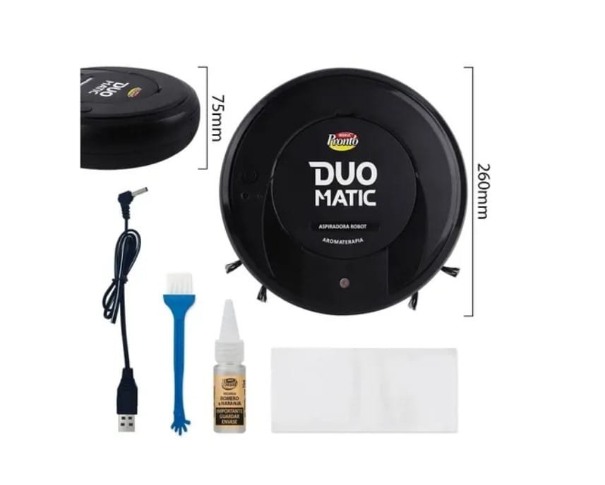 El ROBOT DUO MATIC hace tu vida mas fácil y agradable. Con solo presionar un botón se mueve de forma automática alrededor de tu casa recogiendo partículas, polvo y pelos del suelo, incluso debajo de los muebles, mientras que al mismo tiempo aromatiza los ambientes con aceites esenciales de aromaterapia generando espacios únicos. Trabaja eficientemente sobre pisos duros y planos como parquet, flotante, porcelanatos, alisados, etc. Relájate con Iberia Pronto ROBOT DUO MATIC® el gran aliado para las tareas de limpieza diarias.
